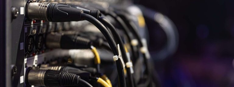 On large-scale events, all audio cables use 3-pin XLR connectors, and all lighting cables use 5-pin XLR connectors.